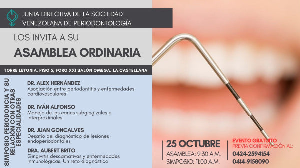 La Sociedad Venezolana de Periodontología ofrece recursos educativos sobre las enfermedades gingivales y periodontales, sus factores de riesgo, diagnóstico temprano y tratamientos disponibles. Su objetivo es empoderar a pacientes, cuidadores y profesionales de la salud para que adopten hábitos preventivos y eviten complicaciones que puedan afectar la función masticatoria y la salud general.